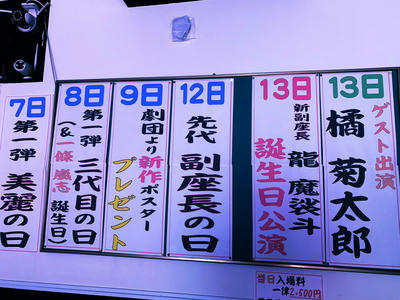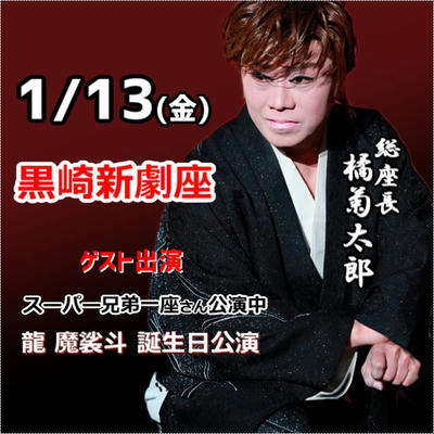 1/13 総座長 黒崎新劇座へゲスト出演 2023年01月06日 2023年01月 0 1月13日(金)黒崎新劇座龍 魔裟斗 副座長 誕生日公演総座長 橘菊太郎 出演いたします。https://sakua0902iv.blog.shinobi.jp/Entry/1950/ [0回]