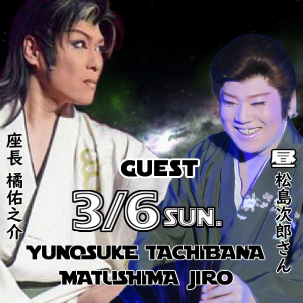 3月6日(日)演目 2022年03月05日 明日の演目 0 3月6日(日)昼夜公演昼「弥太郎しぐれ笠」夜「佑之介座長が立てる新外題」(昼夜)橘佑之介座長、ゲスト出演(昼)松島次郎さん、ゲスト出演 https://sakua0902iv.blog.shinobi.jp/Entry/1831/ [0回]
