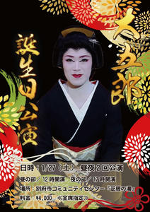 1/27(土) 橘 大五郎 誕生日公演 2023年12月27日 2024年01月 0 1月27日(土)橘 大五郎 誕生日公演■場所■別府市コミュニティセンター芝居の湯■料金■全席指定4000円■予約■劇場での受付は1月4日 11時30分〜https://sakua0902iv.blog.shinobi.jp/Entry/2046/ [0回]