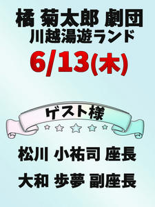 2024.1/12 松川小祐司 座長 座長10周年記念公演 2023年12月11日 2024年01月 0 1月12日(金)松川小祐司 座長 座長10周年記念公演橘菊太郎橘大五郎出演いたしますhttps://sakua0902iv.blog.shinobi.jp/Entry/2042/ [0回]