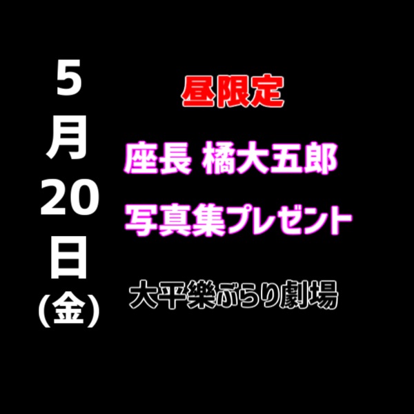 5/20 三代目の写真集プレゼント 2022年05月09日 2022年05月 0 5月20日(金)昼限定三代目座長 橘大五郎の写真集をプレゼント https://sakua0902iv.blog.shinobi.jp/Entry/1866/ [0回]