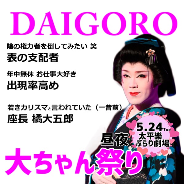 5/24 昼夜 大ちゃん祭り 2022年05月22日 2022年05月 0 5月24日(火)大ちゃん祭り https://sakua0902iv.blog.shinobi.jp/Entry/1872/ [0回]