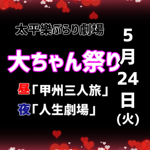 5/31 劇団京弥 特別友情会 2022年05月26日 2022年05月 0 5月31日(火)劇団京弥 特別友情会橘菊太郎橘小次郎出演致します。 https://sakua0902iv.blog.shinobi.jp/Entry/1875/ [0回]