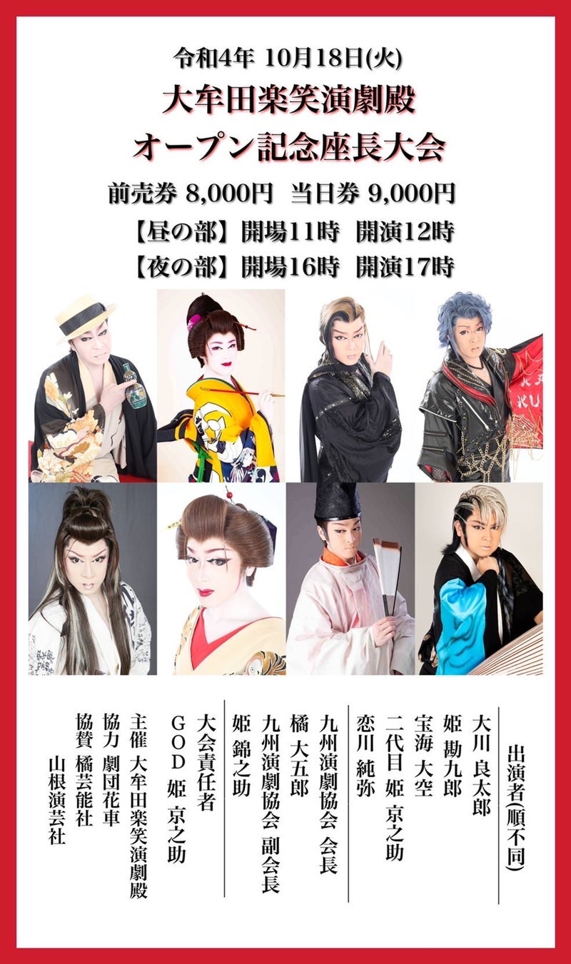 10/18 大牟田 楽笑演劇殿オープン記念座長大会 2022年10月03日 2022年10月 0 大牟田 楽笑演劇殿10月18日(火)楽笑演劇殿オープン記念座長大会 橘大五郎 出演致します https://sakua0902iv.blog.shinobi.jp/Entry/1922/ [0回]