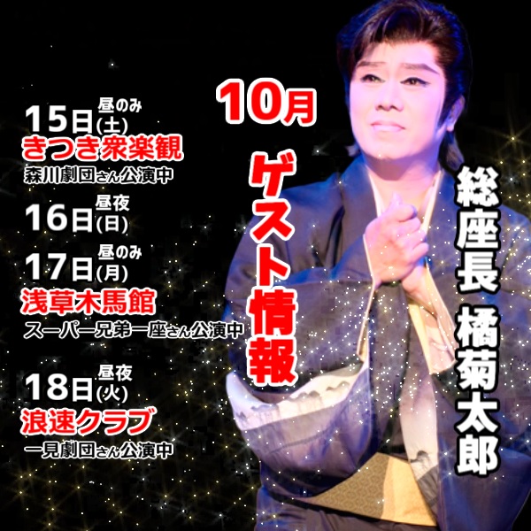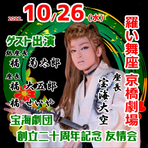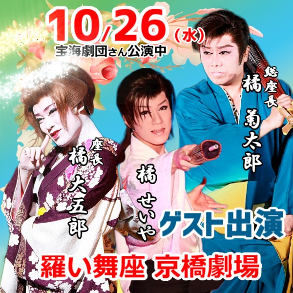 10/26 総座長 三代目 せいや 羅い舞座京橋劇場へゲスト出演 2022年10月22日 2022年10月 0 羅い舞座 京橋劇場10月26日(水)宝海劇団創立二十周年記念 友情会橘菊太郎橘大五郎橘せいや出演いたします https://sakua0902iv.blog.shinobi.jp/Entry/1929/ [0回]