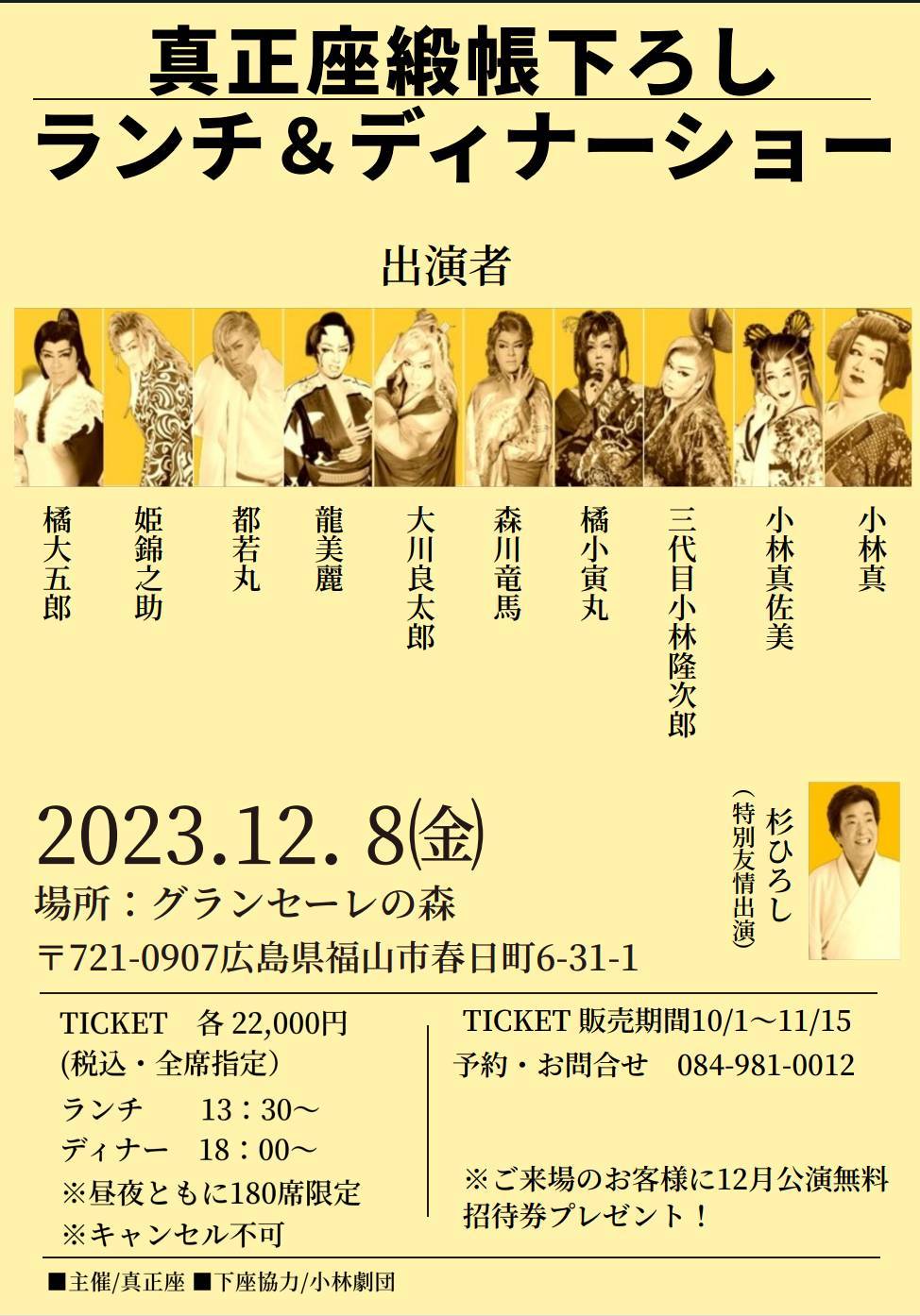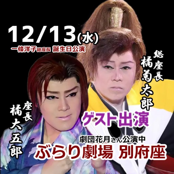 12/13 総座長 三代目 ぶらり劇場別府座 へゲスト出演 2023年12月09日 2023年12月 0 12月13日(水)一條洋子 総座長 誕生日公演ぶらり劇場別府座 橘 菊太郎橘 大五郎出演致します https://sakua0902iv.blog.shinobi.jp/Entry/2041/ [0回]