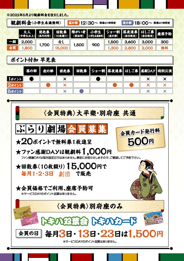 太平楽ぶらり劇場 料金改定 2022年04月29日 2022年05月 0 太平楽ぶらり劇場 5月より料金改定になります。 https://sakua0902iv.blog.shinobi.jp/Entry/1861/ [0回]