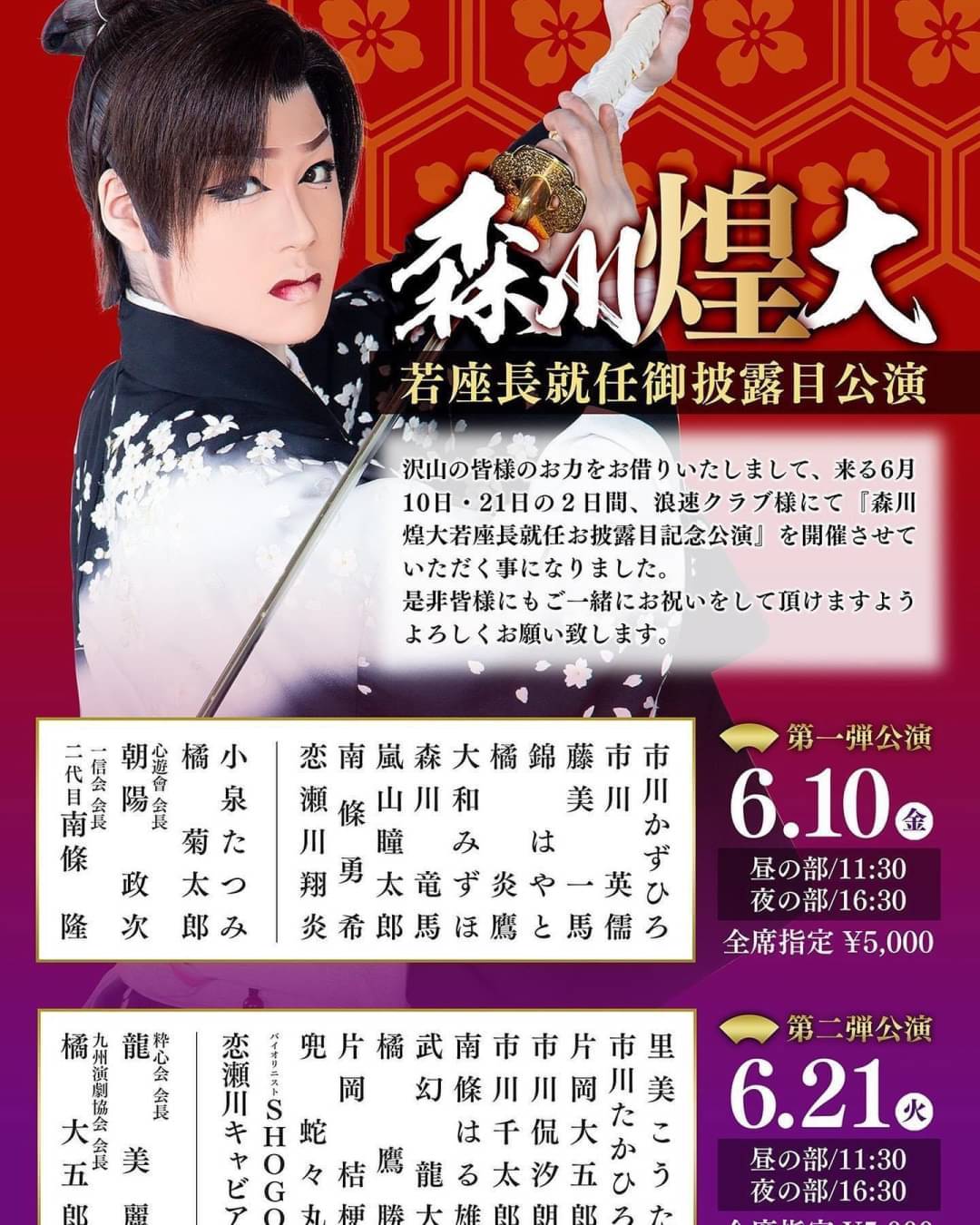 6/10・ 6/21 浪速クラブにて 2022年05月22日 2022年06月 0 「森川煌大若座長 就任お披露目公演」https://sakua0902iv.blog.shinobi.jp/Entry/1873/ [0回]
