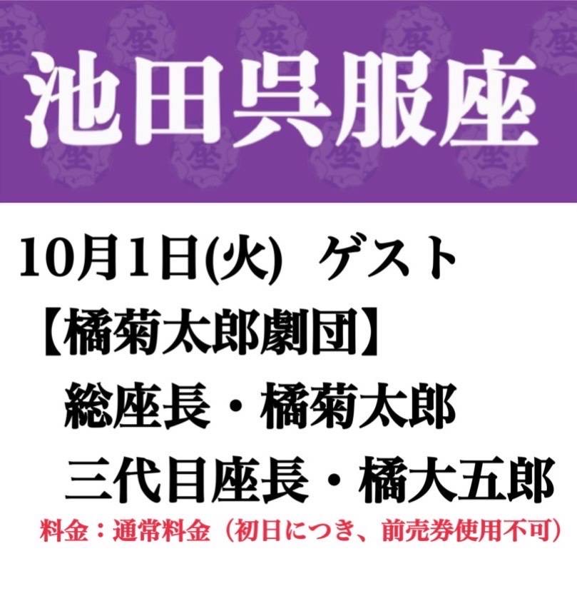 10/10(木) 黒潮 優 座長就任一周年記念公演 橘 大五郎 2024年09月22日 2024年10月 0 10月10日(木)朝日劇場黒潮 優 座長就任一周年記念公演橘 大五郎 出演致します。 [0回]